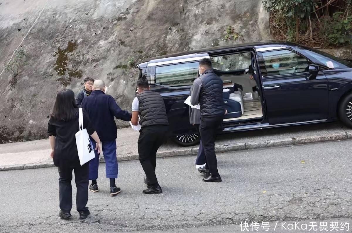 刘銮雄步碾儿摇摇晃晃的,但合座精神景色很好。从背影看他身段依然挺拔,外出也很有好看,保姆车+5名保镖助理,稳健他的身份。