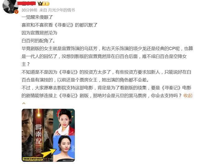 也即是说,白百何将是电影版的女一号。 而剧版中的女主角,扮演乌廷芳的宣萱,则径直变为女配。 当今白百安在片中扮演的脚色仍未公布,但阁下上映,才让影迷们发现宣萱的女主角地位不保,这番位之争委果令东说念主迷糊。