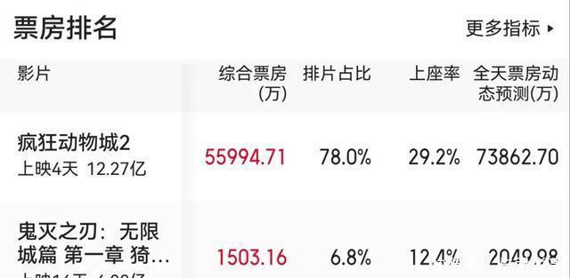 《鬼灭之刃》被吹的那么利害,在《荒诞动物城2》眼前即是个弟弟啊,才上映第4天累计票房已破12亿! 更让我没猜想的是,《荒诞动物城2》的首映票房明明皆没达到预期,平台展望还给降了票房,以及上映3天后豆瓣评分明明出现了下滑,从8.7分降到了8.6分,有不少影迷还吐槽第二部剧情光显不如第一部...