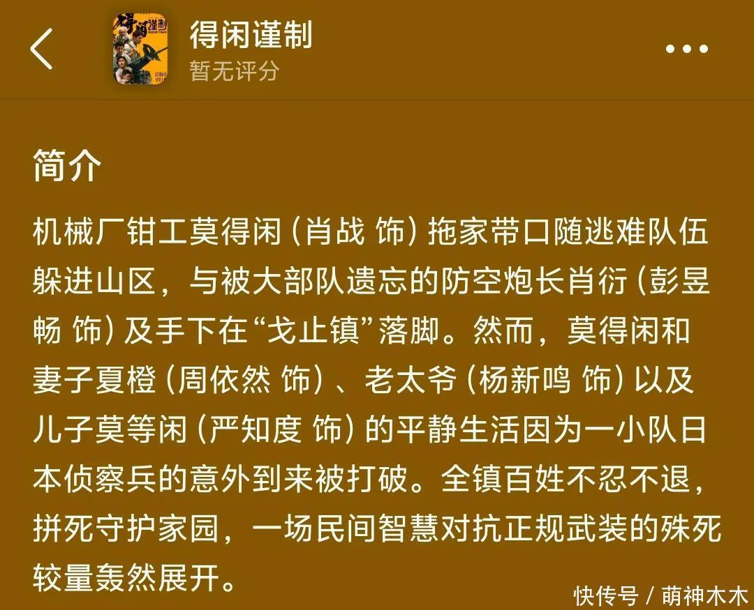 《得闲谨制》讲演的是山区小镇住户抵触日军督察家东说念主的故事,导演是孔笙,编剧是兰晓龙,出品公司是正午阳光,抛开肖战不提,电影自己班底就自带口碑。