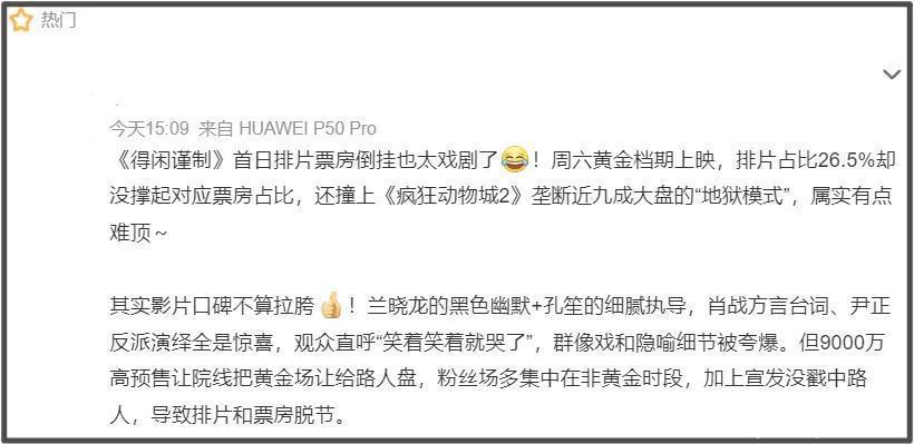 有关词只是发布一个声明,是没主义蛊卦更多不雅众进电影院的,在网友看来,《得闲谨制》片方有点躺平了。