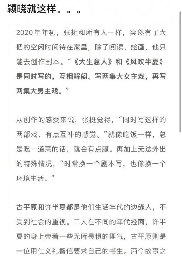 别传写《大交易东谈主》的编剧,和电视剧《风吹半夏》的是团结个东谈主。况且早在几年前那段极度居家的日子里,编剧同期写两部剧。天然是完全不同的年代和故事,一部古装大男主,一部当代大女主,但架构其实相通,中枢等于给大主角制造多样侘傺鬈曲隐隐,然后赋予无所不行的光环,劲往一处使,也算是万变不离其宗。