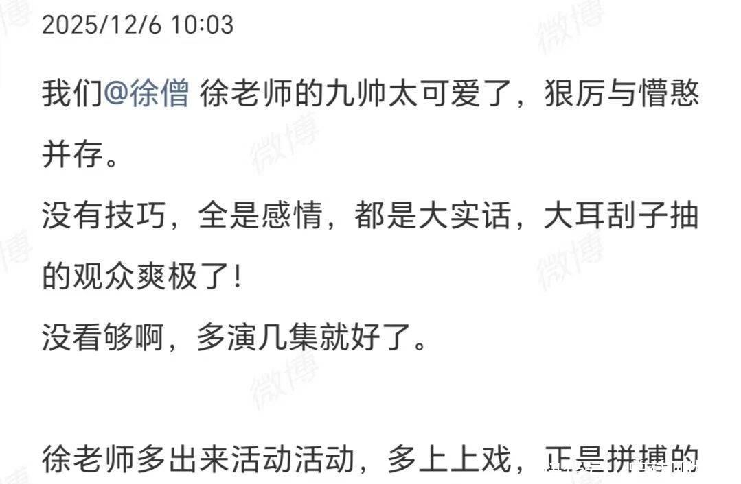 此次,徐僧在《大交易东谈主》中饰演九帅时,当作戏与热沈戏均十分逼真。徐僧凭借习武基础底细,批颊保庆、乔松等戏份时,气场泼辣、主意凌厉、当作利落,将武将的杀伐决然演绎得大书特书,不雅众称其坚韧气场焊在身上,批颊同寅的劲儿顺利圈粉,致使于命令九帅戏份加码,徐僧值得更多的剧。