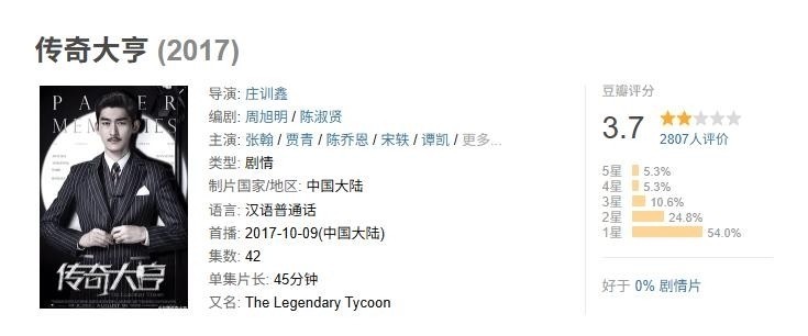 张翰主演的《别传财主》因剧情聚焦个情面爱纠葛、神色忐忑,最终仅收货3.7分的惨淡评价,转型尝试当然宣告失败。