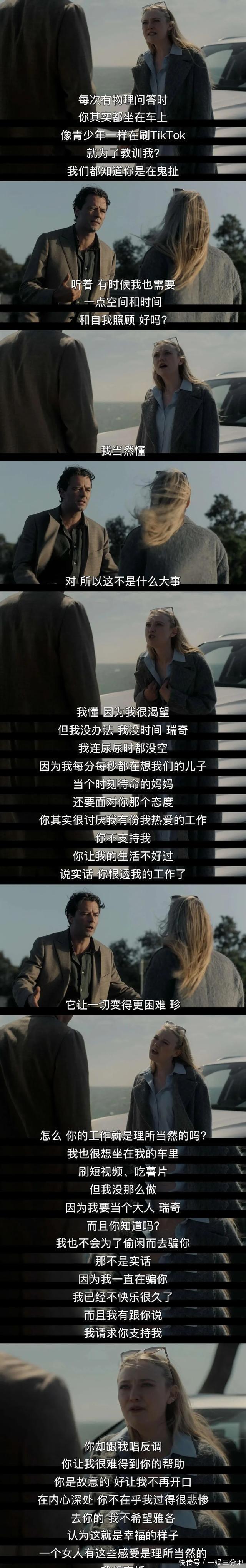 直到珍妮撞破了丈夫以职责为由祛除育儿牵扯,躲在公园泊车场喝奶昔刷视频时,才觉悟,这样一地鸡毛的婚配生计,可以终结了,也唯有“离异”,她才能快速地从这样的生计里抽离出去,才能真确将孩子和职责都照应好。