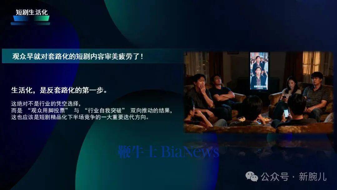 通过这些看到了一个规章,短剧杰作化的竞争聚集到生涯化和口碑化的竞争了。当先讲讲生涯话,敬佩诸君同仁都有一个感受,不雅众也曾对套路化实质审好意思疲钝了,看到标签化以及一样的说念具也曾莫得兴致看了,生涯化便是反短剧套路的第一步,其实这毫不是行业诬捏给与,而是不雅众用脚投票和行业自我给与双向打破的效果,我敬佩生涯化亦然短剧杰作化下一个进军的转型目的。