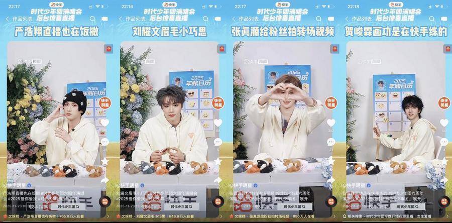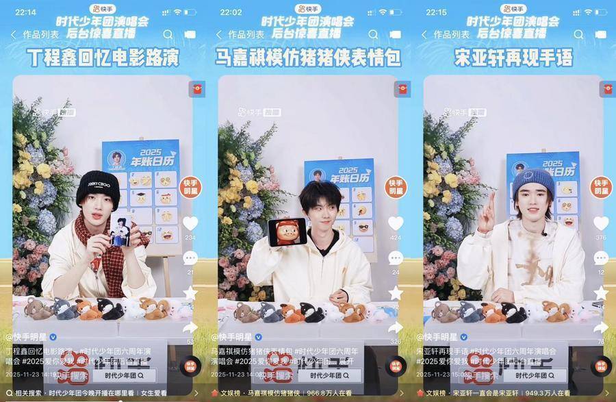 回来时间少年团在快手的成长萍踪,从曩昔共享到首要本事的直播,快手不仅仅践诺发布的平台,更是时间少年团与粉丝共同构建牵记、双向心境流动的芳华现场。