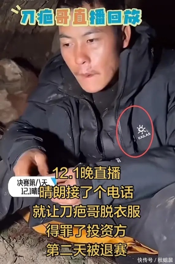 25. 曾有一段直播画面夸耀,刀疤哥衣着非赛事指定品牌的羽绒服,并公开推奖该衣服御寒性能出色。