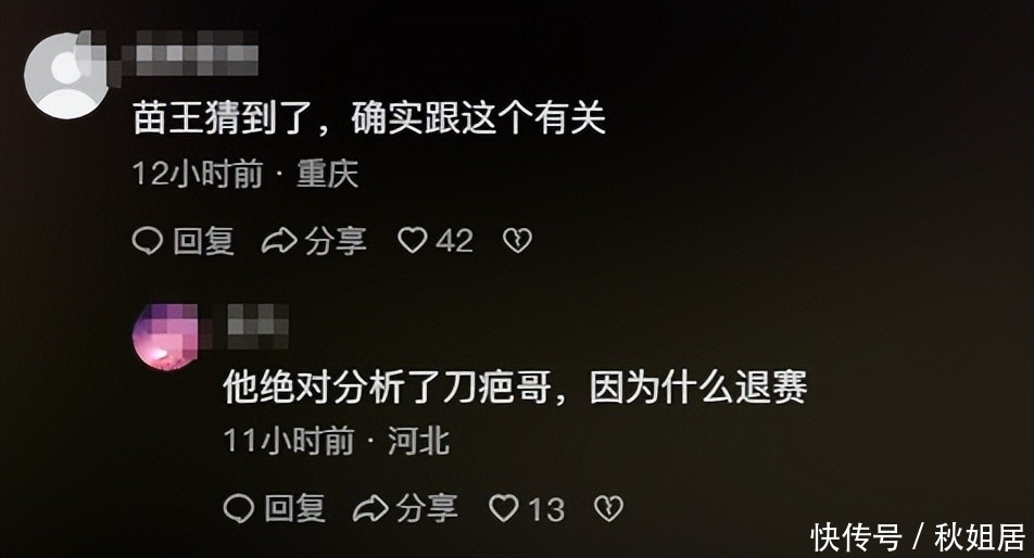 4. 12月2日,比赛才过问第九天,蓝本被通盘东说念主视为夺冠最大热点的刀疤哥顿然书记退赛,惊怖全网。