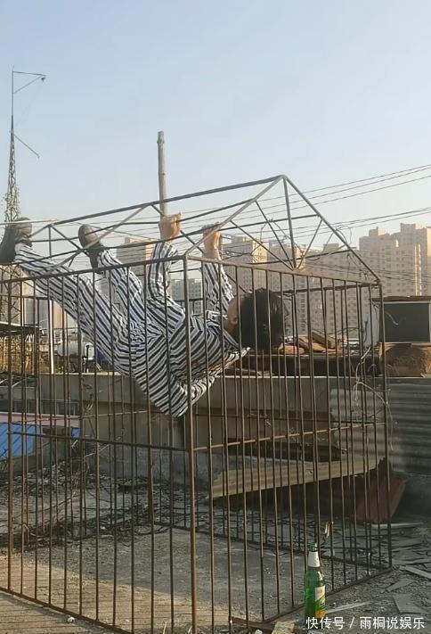 12月2日,只见心态崩溃的他顶着鸡窝头,一稔孤单病员服,衣服上还刻有某某神经医院的图案,将我方关进半米多高的铁笼中。